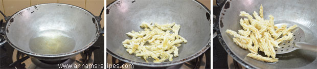 If the oil is over heated the vadam will turn brown and will not puff properly. So regulate the stove and fry.